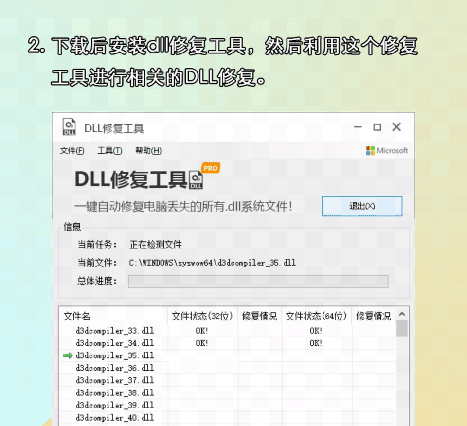 借助专业的 dll 修复工具也是不错的选择。使用dll修复工具进行修复操作非常简单(亲测可以修复),它可以自动检测电脑缺失或者损坏的dll文件。