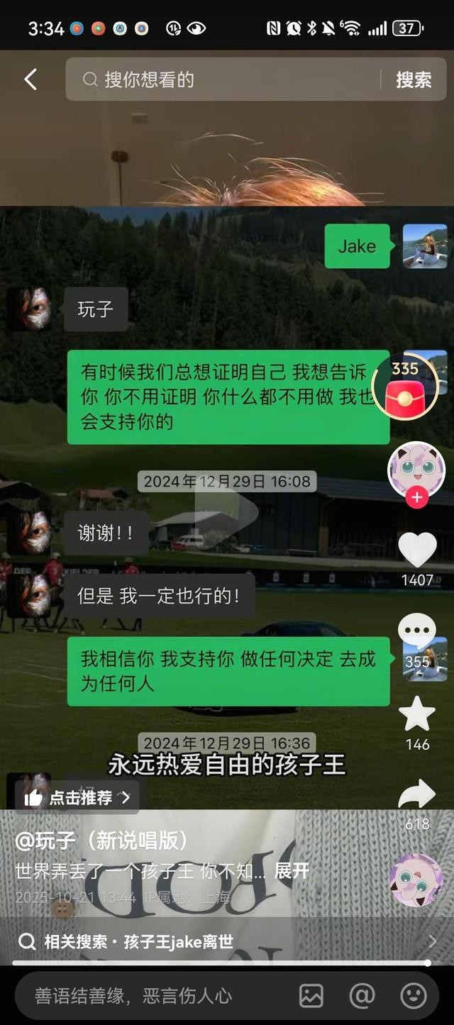 玩子回忆说,一开始知道孩子王Jake,是看他那些抽象搞笑视频,拿着音响在大街上、地铁里放歌,“这就是我认识的他,一个网络抽象艺术家,一个为了音乐能豁出去一切的人。去侃爷演唱会冲上舞台,很多人都说他疯了,但在我眼里,他就是做了很多人想做却不敢做的事。他活着的每一秒都在尽情体验这个世界。”