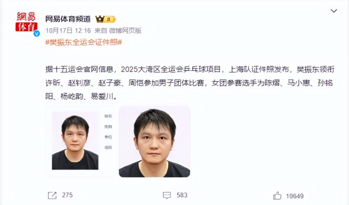 现在,队员们的报名信息都出来了,能够看出来,像樊振东,这是从那次训练时来过来随便拍的一张照片吧,这些照片当中,大家有没有看到以前的熟面孔呢?