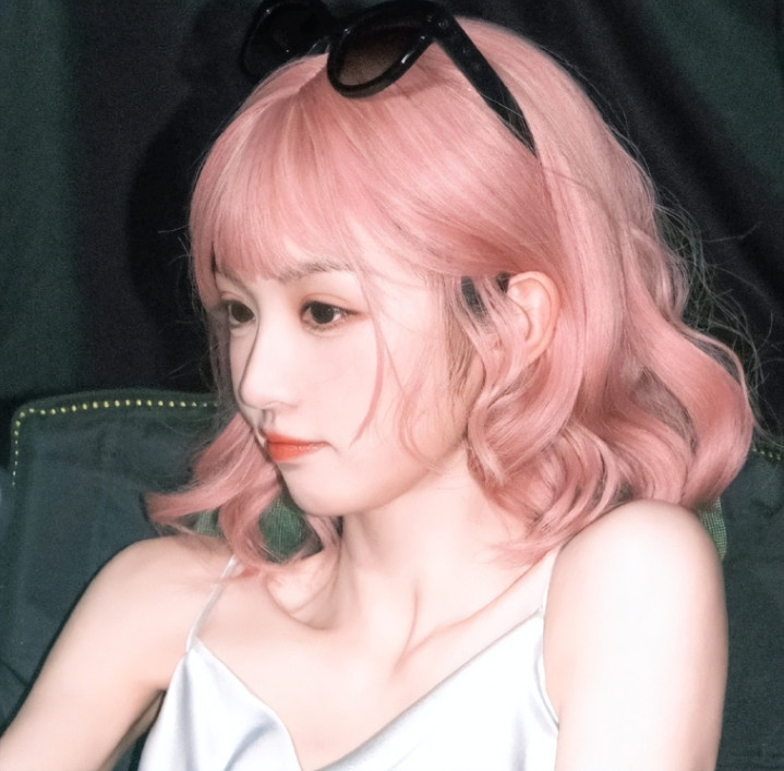 和上面的粉色齐刘海对比简直就是两个极端,反差也太大了!