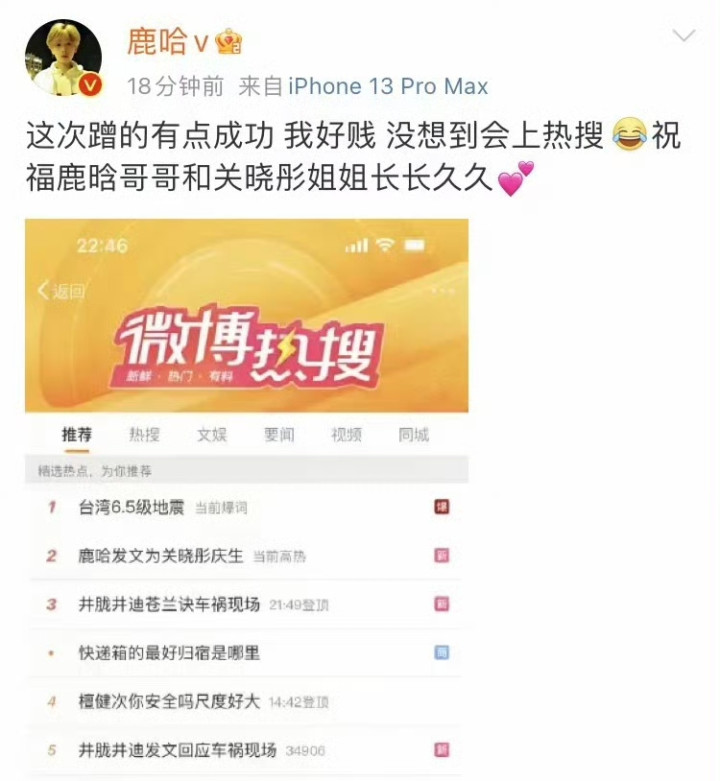 2022年9月17日,鹿哈曾复制鹿晗为关晓彤庆生的文案,自称鹿晗粉丝并承认蹭热度。