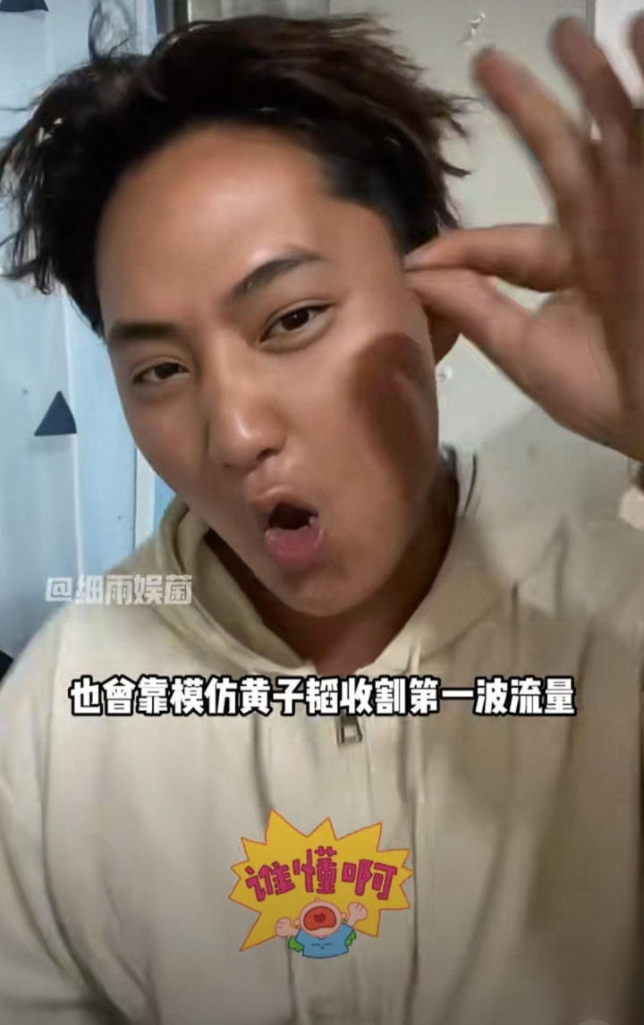 成立山寨男团ESO模仿EXO组合模式,与“王二博”“易烊干洗”“黄子诚”等模仿者组建“拼夕夕男团”ESO,通过土味表演和夸张话题吸引眼球。其中“退团风波”和自导自演的“与关晓彤官宣恋情”等戏码,因荒诞性引发全网热议,实现初次出圈。